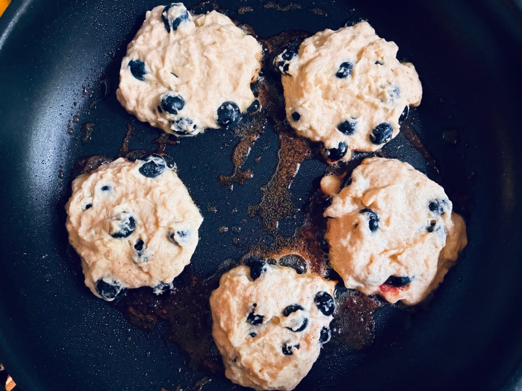 I’ve written the recipe with the blueberries in the mix but as I mentioned, feel free to omit them in the drop mix. Make sure the pan is only set to a medium heat so that the drops have enough time to cook all the way through without burning😊.