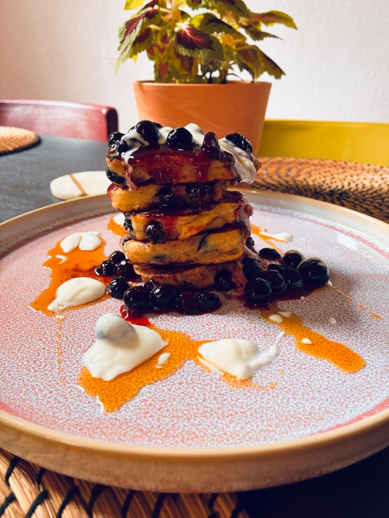 • serve the drops with the blueberry sauce, yoghurt and maple syrup! Enjoy!