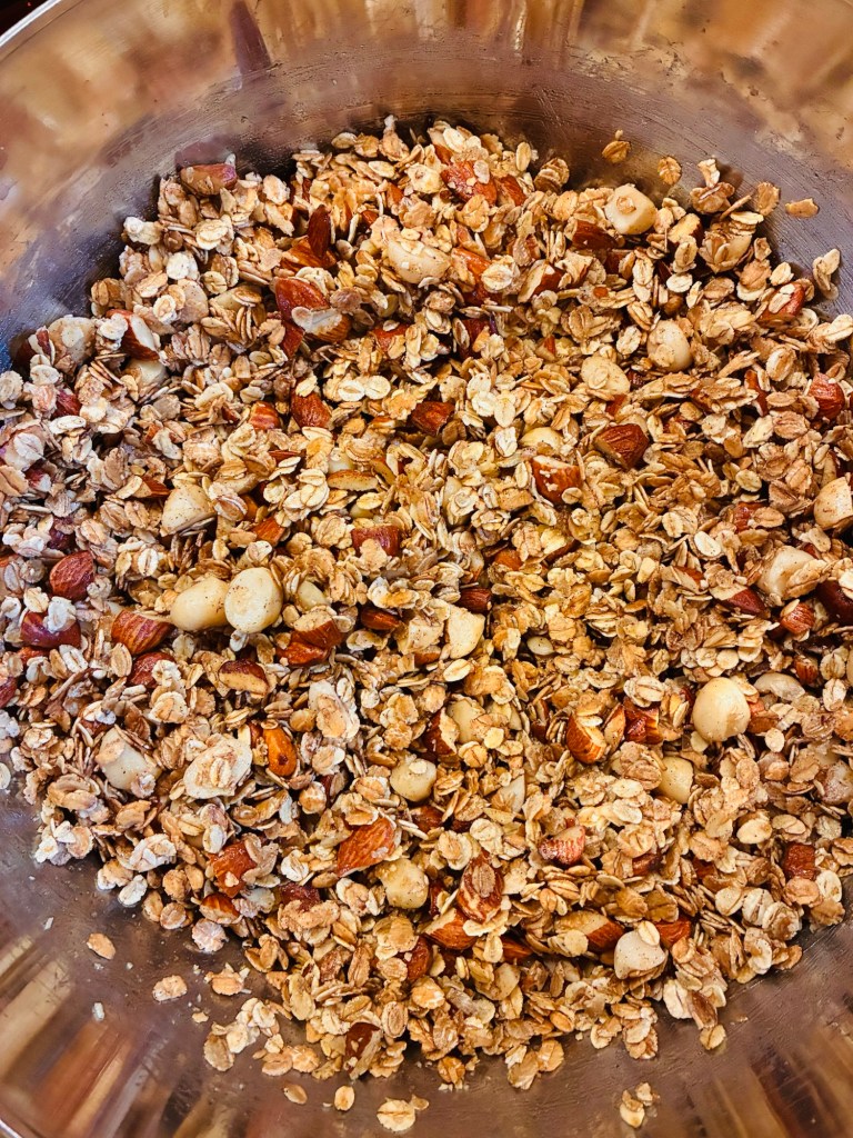 My kids love homemade muesli/granola, whatever you want to call it. Every week or so I whip up a baking tray full of different kind of oats, nuts and dried fruit and keep it stored in a tin container so that the kids and my husband can have it for breakfast with creamy yoghurt and fresh fruit, or just grab a handful to snack on if they feel like it (which they often do ☺️).