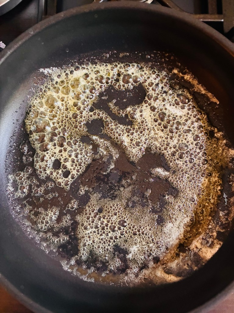• heat up the butter in a non-stick frying pan until the butter is foamy and golden coloured