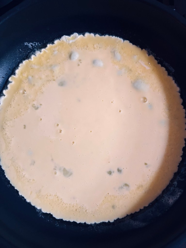 I’ve included pictures so you can see what the frying pan should look like at different stages of the cooking process. The most important thing is making sure the frying pan is really, really hot before adding the eggs. Also take care to do all your prep beforehand, as you’ll have to work fast while cooking 🙂